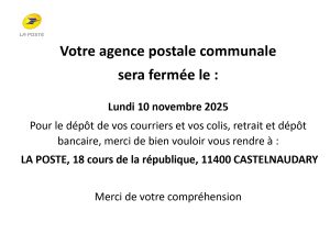 FERMETURE AGENCE POSTALE